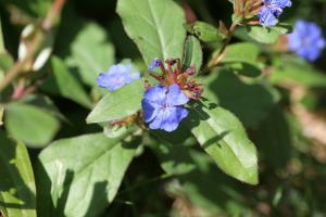 Die Bachblüte Ceratostigma willmottiana darf nicht mit der Kübelpflanze Plumbago auriculata verwechselt werden.