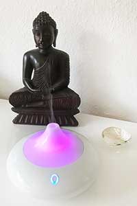 Elektrische Duftvernebler, auch Aroma Diffuser genannt, sind eine feine Sache. Sie werden nach Anweisung des Herstellers mit entmineralisiertem Wasser befüllt. Hinein kommen einige Tropfen reines ätherisches Öl. Es gibt auch für Duftvernebler geeignete Mischungen aus ätherischen Ölen. Nach dem Einschalten gibt der Diffuser per Ultraschall den Duft über eine feine, kalte Nebelsäule ab. Manche elektrischen Diffuser sind mit einem Farbwechsler ausgestattet.